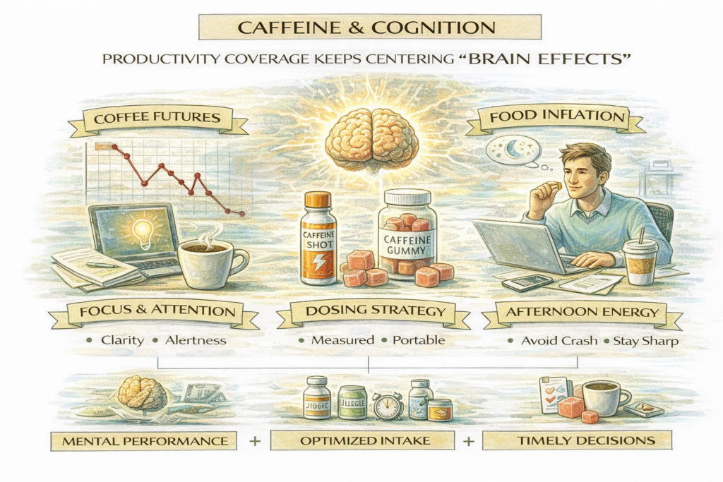 Productivity and cognition coverage in the past 24 hours continued to frame caffeine as a tool people use for mental performance: focus, attention, and sustained work output. This matters commercially because cognitive framing reshapes the competitive set. Consumers aren’t only choosing between coffee brands; they’re choosing among any formats that support “get things done” moments—especially […]