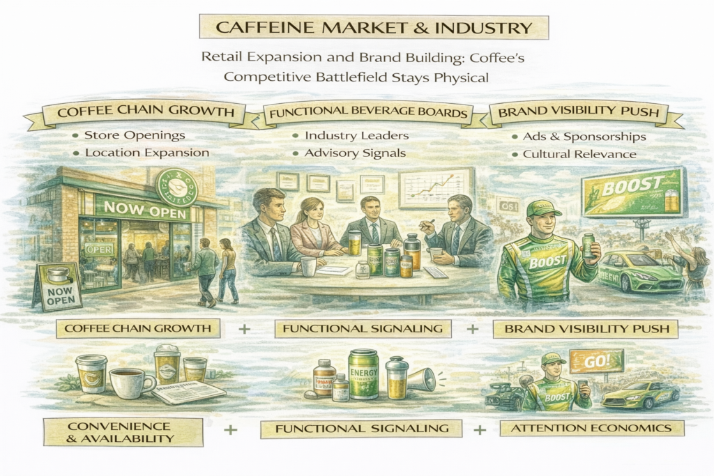 Caffeine-industry momentum in the past 24 hours included signals that still matter in a digital world: store openings and footprint growth. New-unit announcements underscore that convenience, speed, and consistent execution remain decisive advantages for coffee players competing against energy drinks, functional beverages, and at-home options. Every incremental location also expands the caffeine “availability network,” reinforcing coffee’s […]